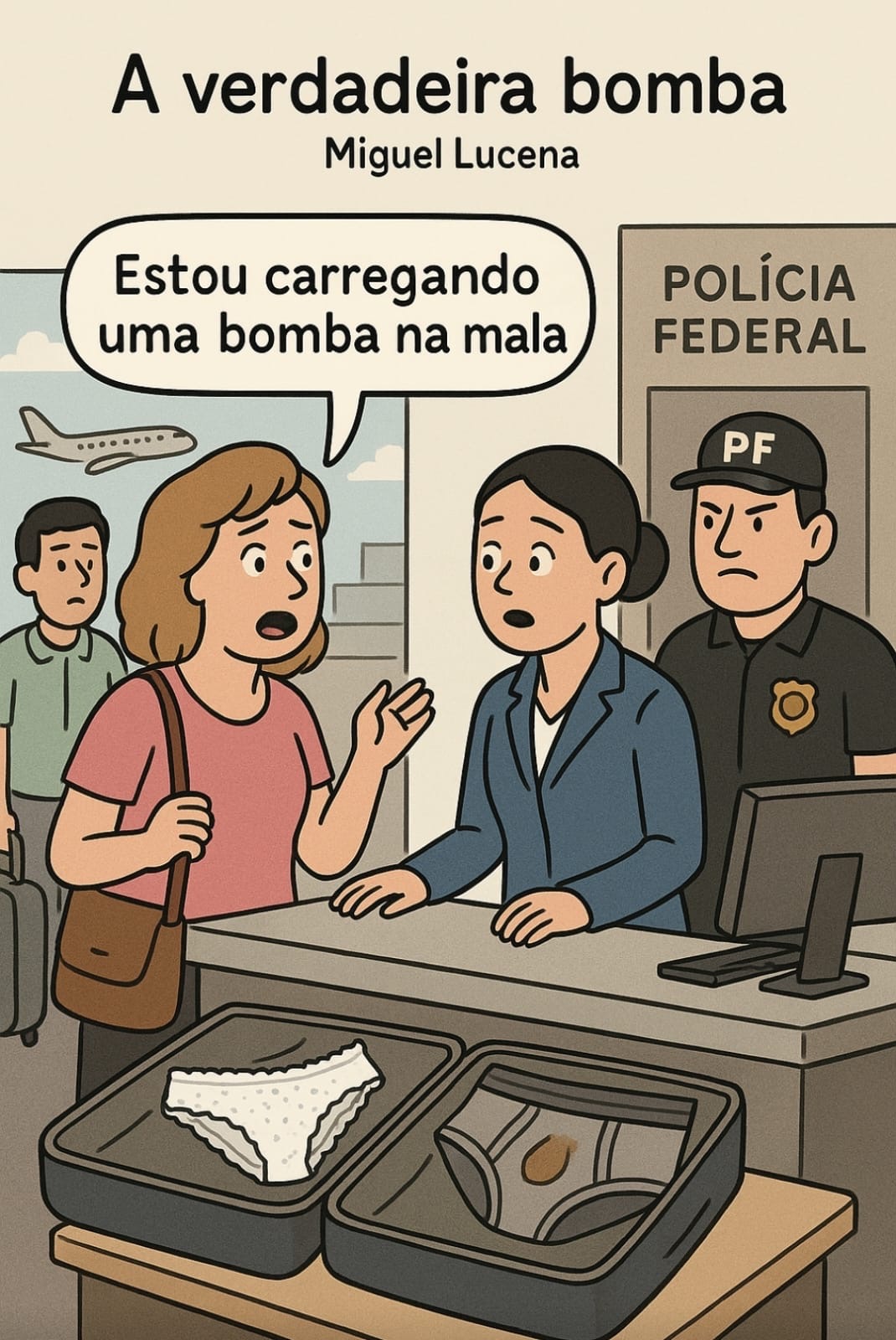 No saguão do aeroporto, entre malas de rodinhas e cafés apressados, uma bancária maranhense resolveu brincar: disse à amiga que carregava uma bomba na bagagem.