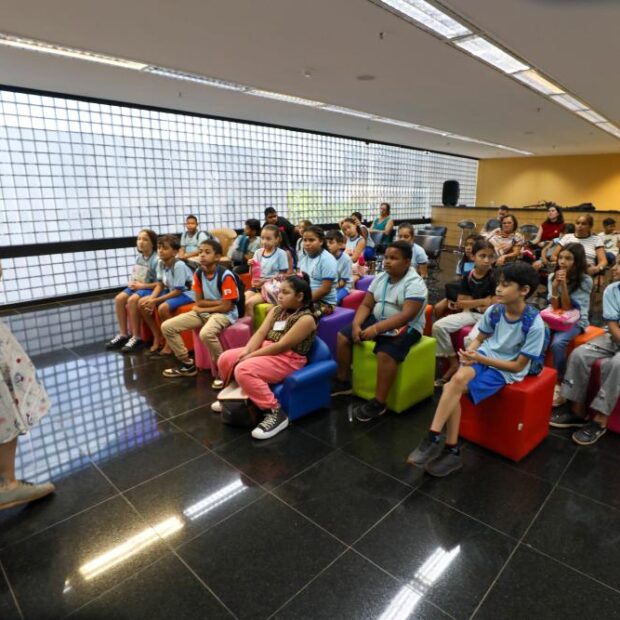 Com um animado “sim!” ecoando pelo salão, 29 crianças da Escola Classe Vila Nova, de São Sebastião, viveram uma experiência inesquecível em sua primeira visita à Biblioteca Nacional de Brasília (BNB). O passeio começou com a pergunta da contadora de histórias: “Quem aqui gosta de ouvir histórias?” — e, a partir daí, os pequenos embarcaram em um universo de imaginação, leitura e descoberta. A atividade proporcionou um encontro lúdico com o conhecimento, despertando nas crianças o interesse pelos livros e pelo espaço cultural que é um dos mais emblemáticos de Brasília.