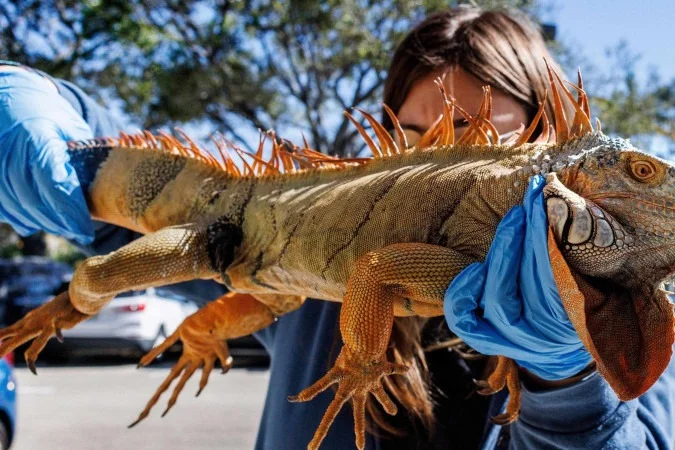 No caso das iguanas, a Comissão de Conservação de Peixes e Vida Selvagem da Flórida emitiu um alerta sobre o potencial de quedas desses animais das árvores devido ao frio extremo dos últimos dias.